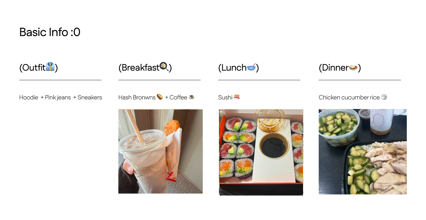 This section mainly features my daily outfits and what I eat each day. I document it with photos so I can easily look back at my daily routine anytime.