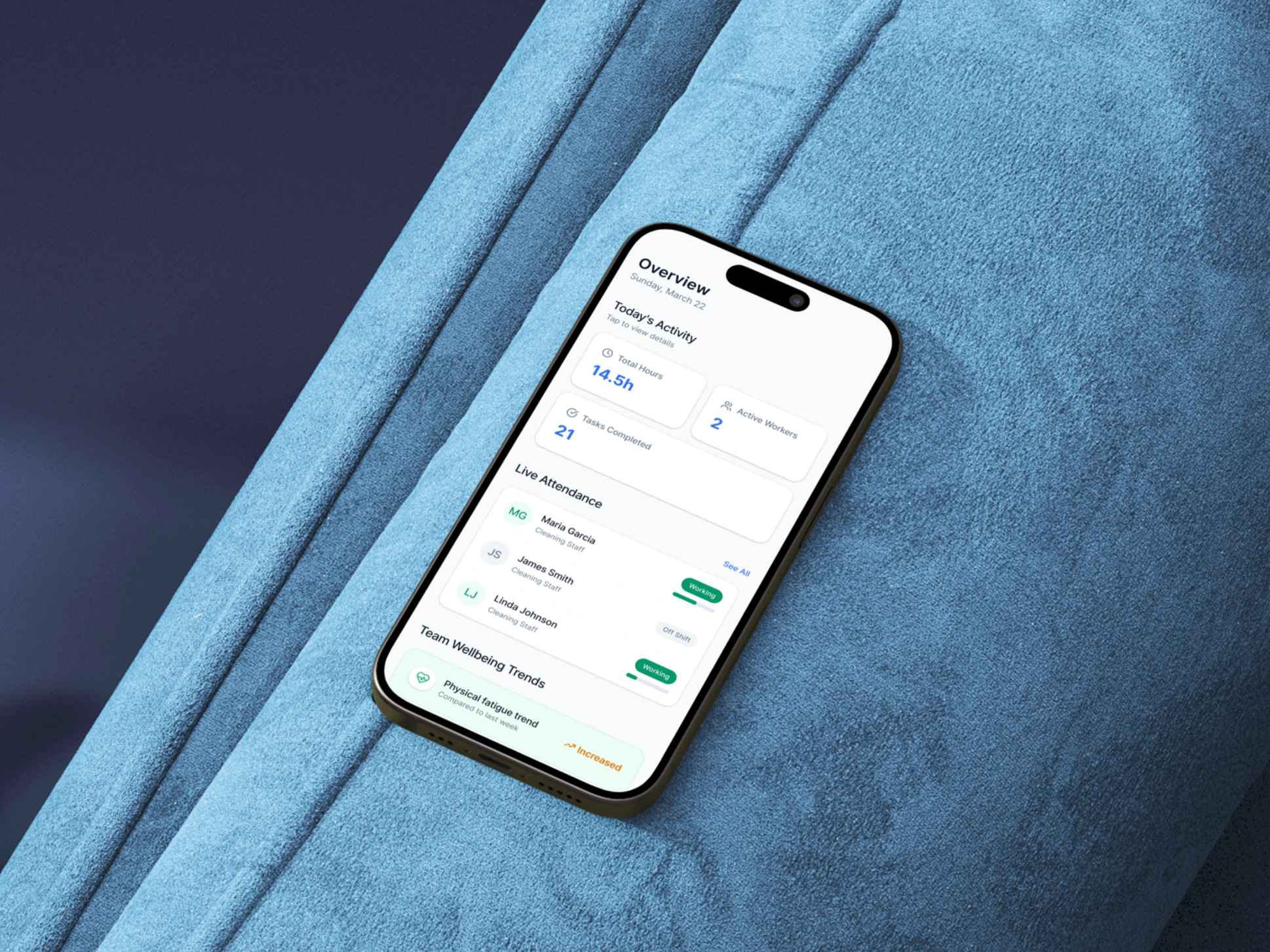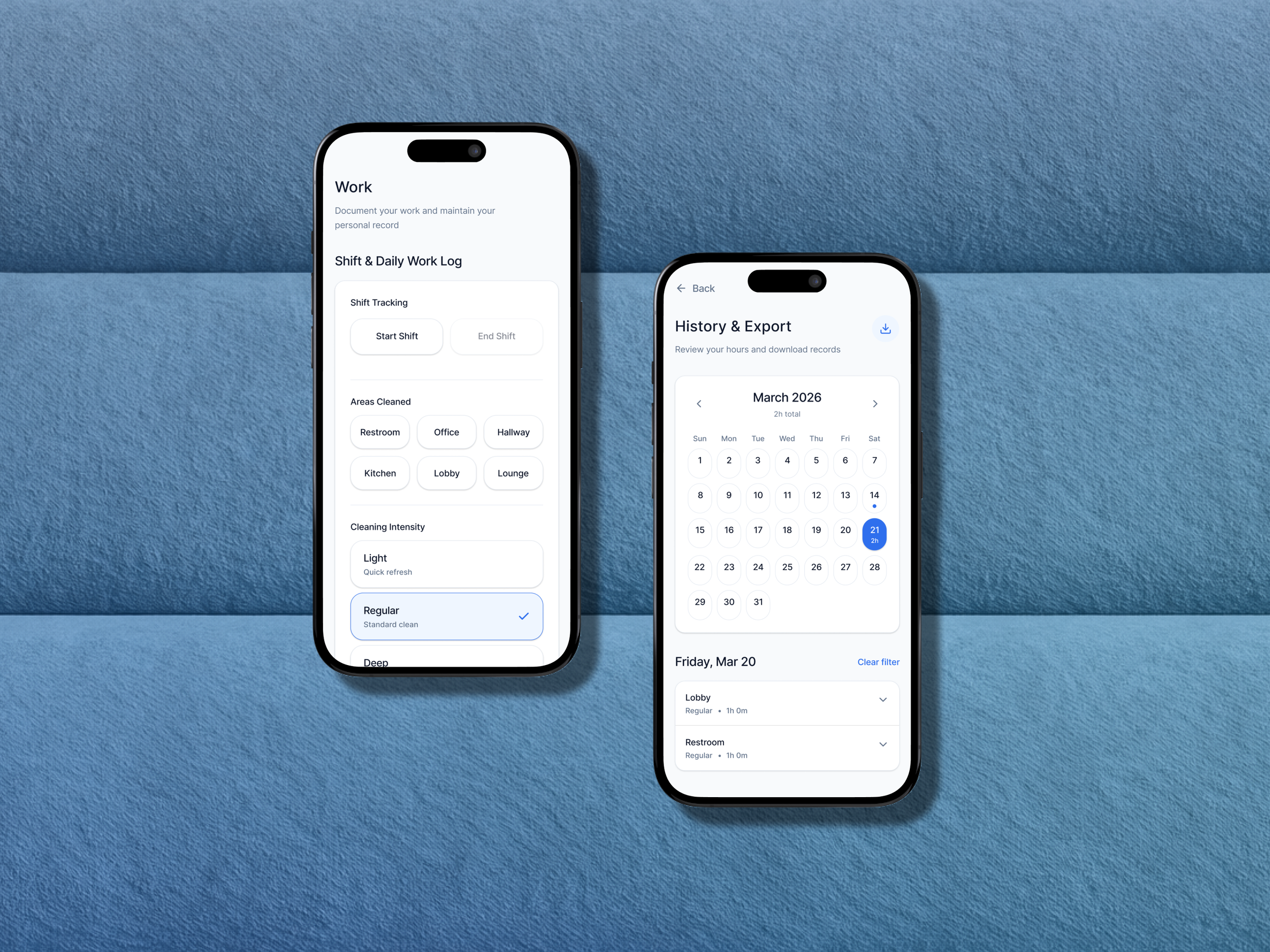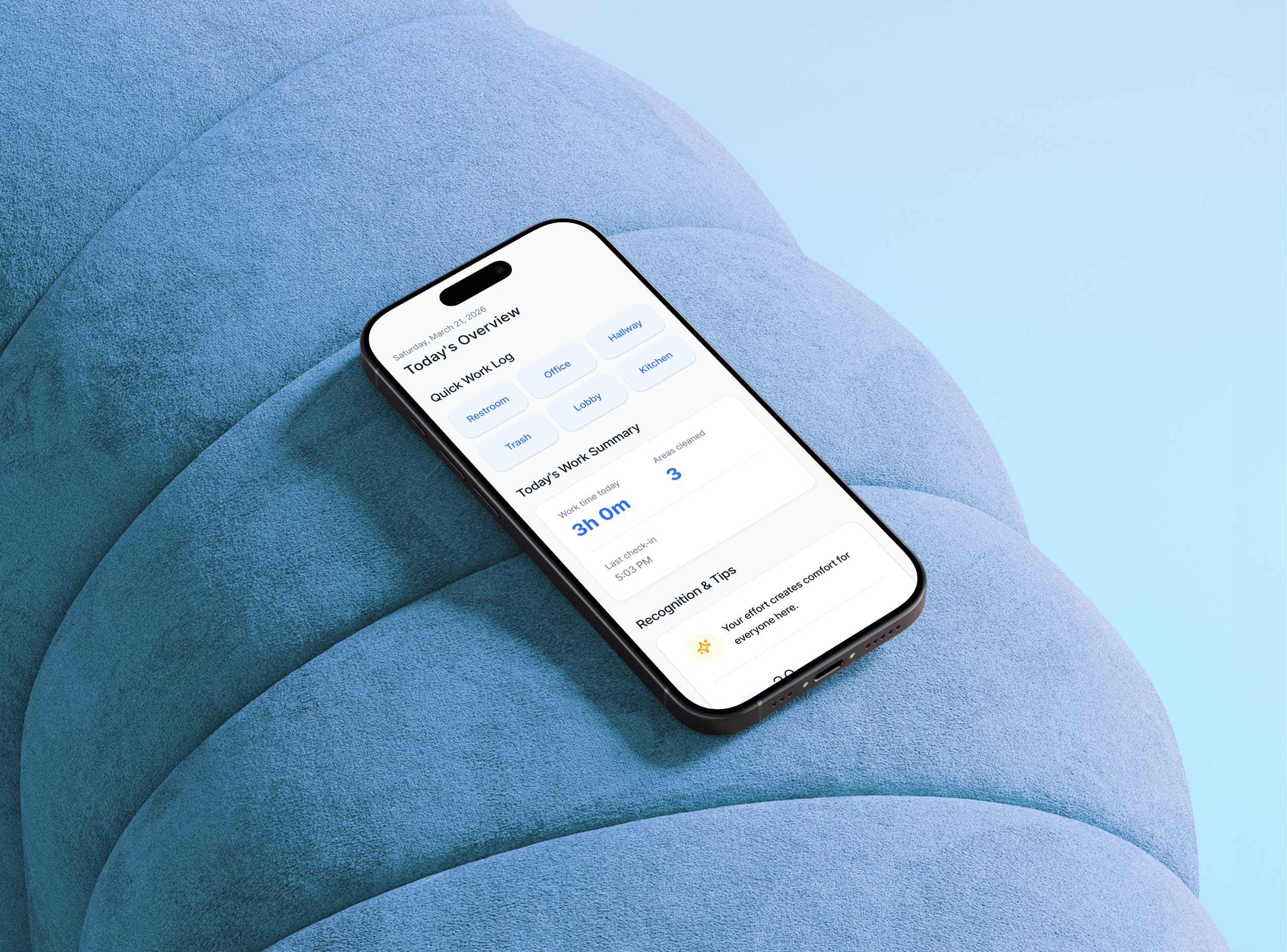 This project designs a mobile system for cleaning staff to document their work and care for their wellbeing. By combining work records, emotional check-ins, and exportable logs, it aims to make invisible labor visible and give workers greater control over their own data. It also reframes everyday logging tools as a form of protection, recognition, and long term support for workers in physically demanding roles.
