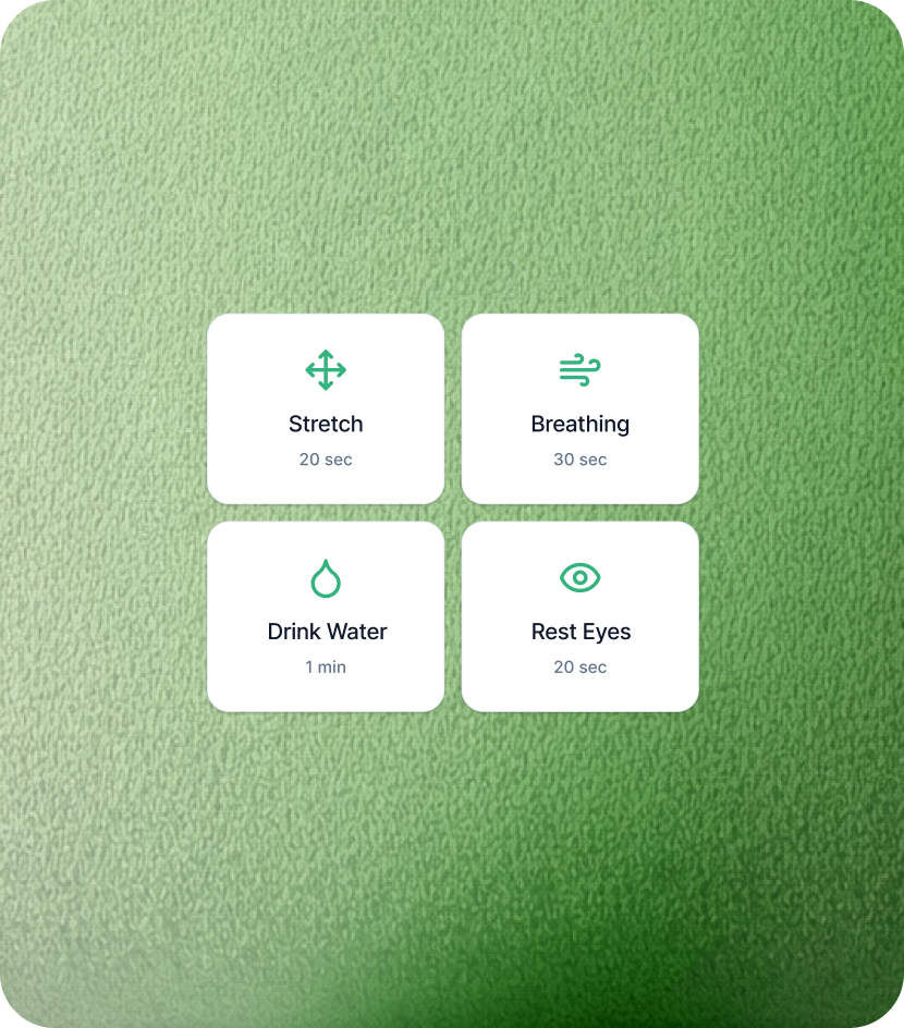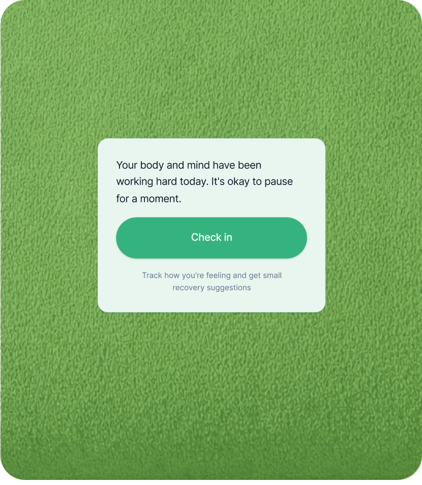 Through a short check-in, users can reflect on what happened during their day, both physically and emotionally. Based on their responses, the system offers small, immediate suggestions to help them pause, recover, and regain balance.